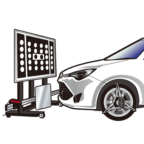 具体的には、レーダーセンサーや音波センサーのついた外装類の脱着や、カメラが付いたフロントガラスの交換、フレーム修正を伴う板金塗装を行ったとき先進安全装置を正しく作動させるために行う校正作業です。